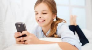 girl with smartphone at home